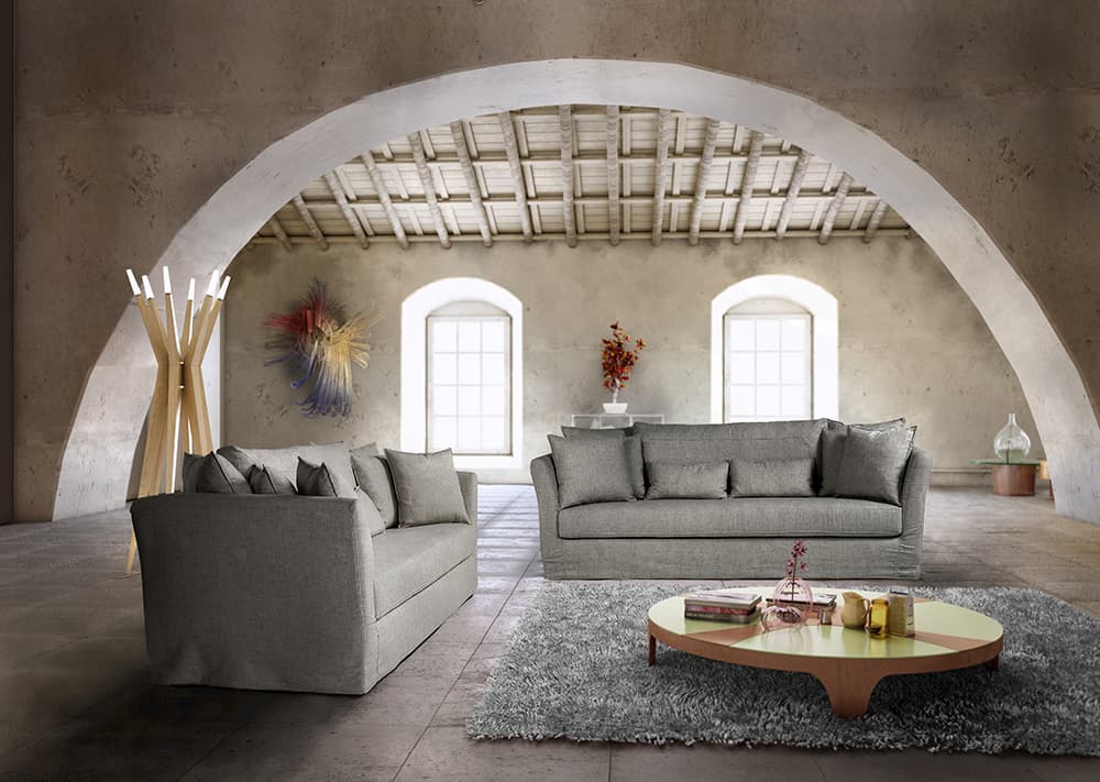 FRAMEWORK: Solid wood covered with polyurethane foam of different densities. FEET: Steel. SEAT SUSPENSION: Springs. BACK SUSPENSION: Elastic band high resistant. SEAT CUSHIONS: Polyurethane 35 kg. Covered with fibre 350 gr. BACK CUSHIONS: Cover filled with hollow microfibre 100% polyester and feather and down. REMARKS: All cushions are with removable covers. |